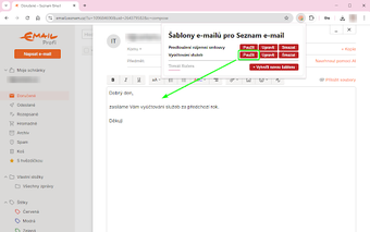 Eklenti, kullanıcı dostu arayüzü sayesinde şablonları hızlı bir şekilde seçme ve uygulama imkanı sunar. Bu özellik, özellikle sık sık e-posta gönderenler için büyük bir kolaylık sağlar. Ücretsiz olarak sunulması, geniş bir kullanıcı kitlesine erişimini mümkün kılar. Šablony pro Seznam e-mail, Seznam e-posta deneyimini zenginleştirmek için etkili bir araçtır.